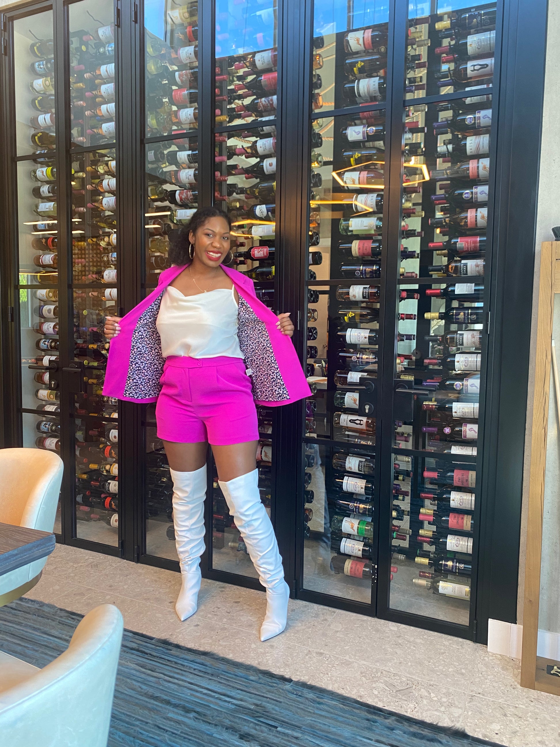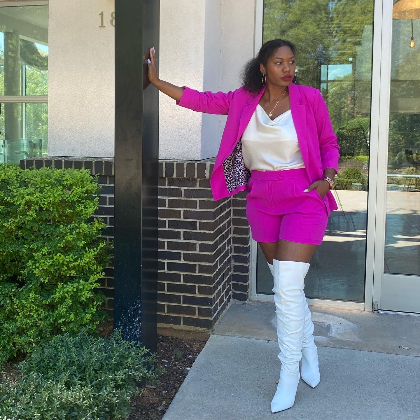 - model is 5'8 | Wearing size Medium | Ultra Pink